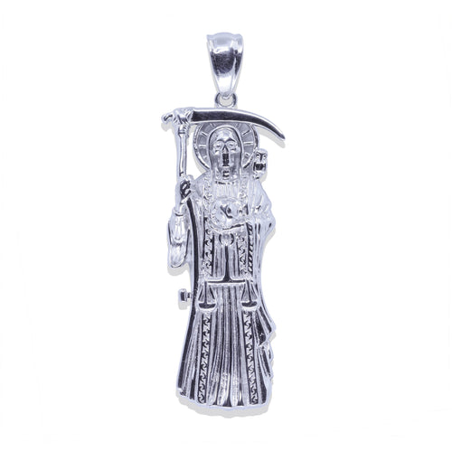 Whether you're drawn to the spiritual significance of La Santa Muerte or simply appreciate the artistry of the design, this sterling silver pendant is a must-have addition to your jewelry collection.